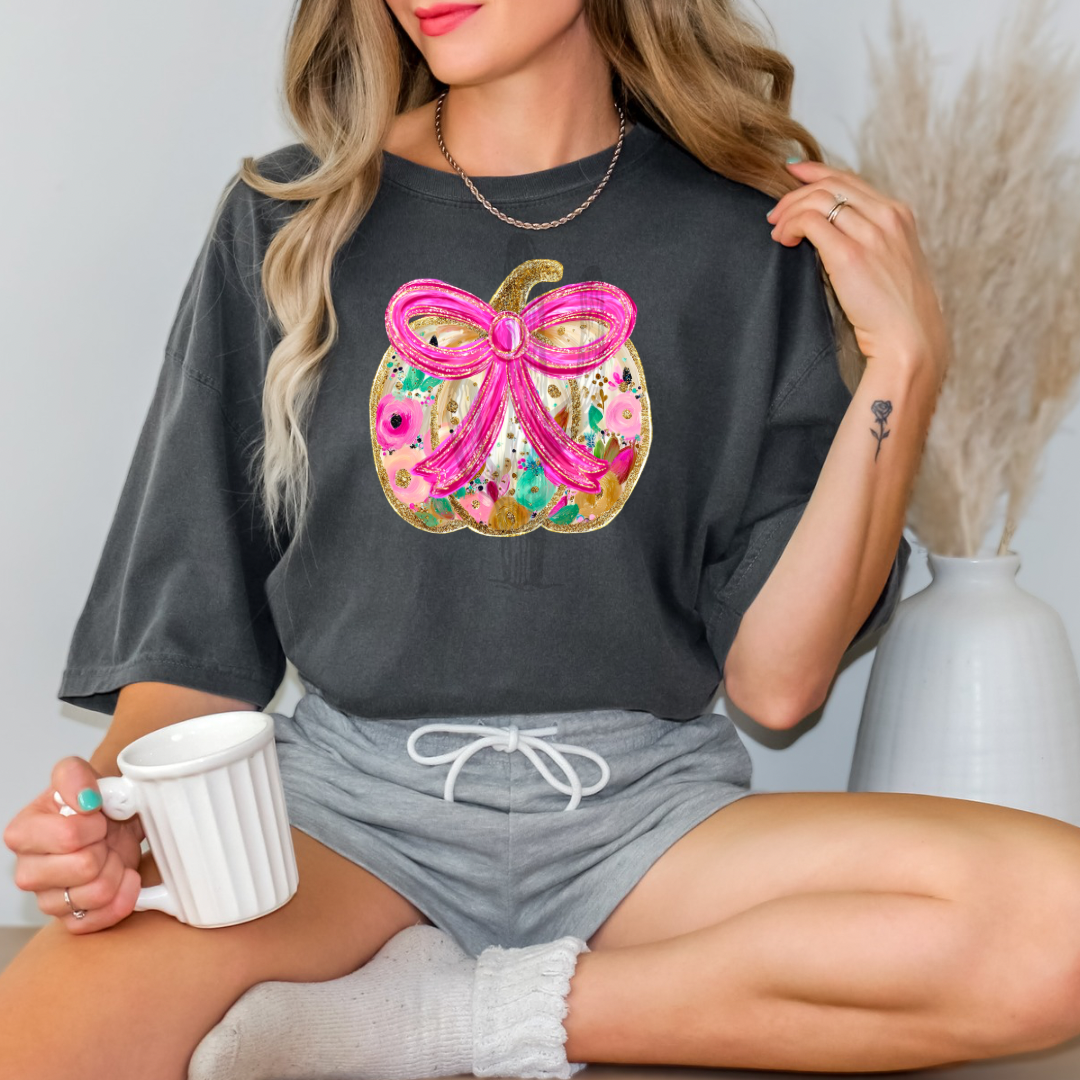 Faux Glitter Floral Pumpkin **DTF Transfer**