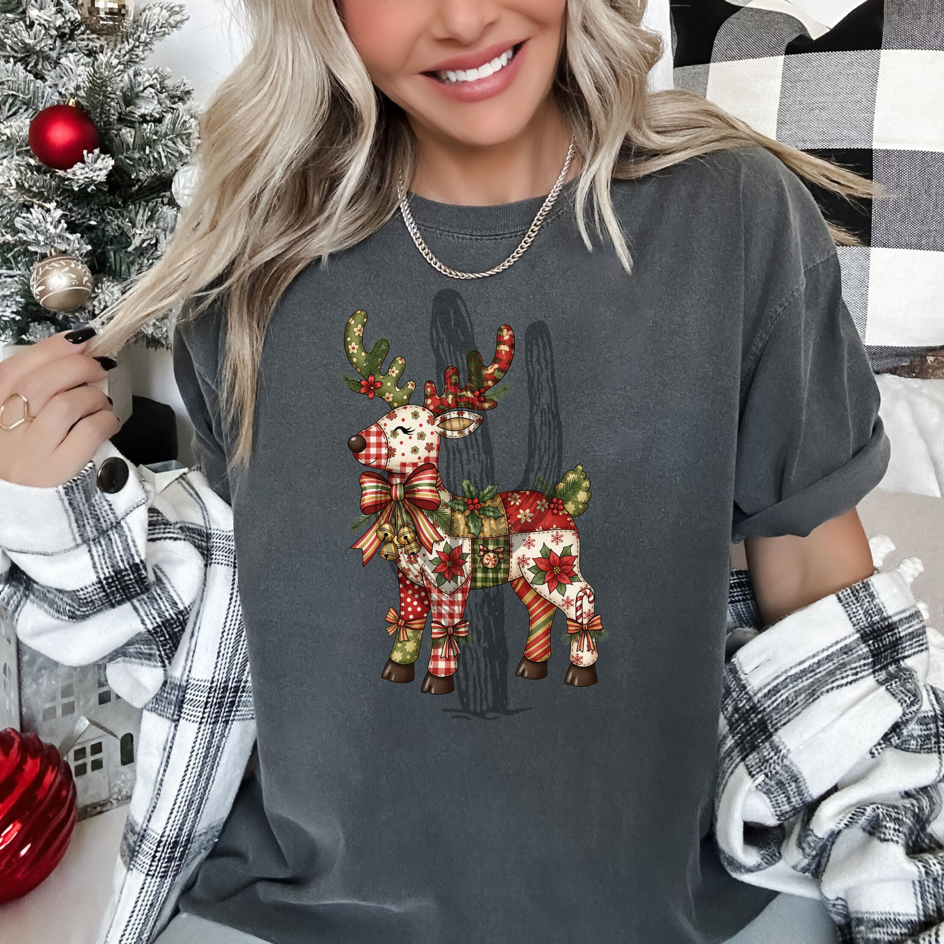 Faux Patchwork Reindeer **DTF Transfer**